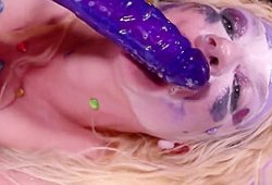 Give Me Pink Leona pleasures herself and wraps cunt lips on objects